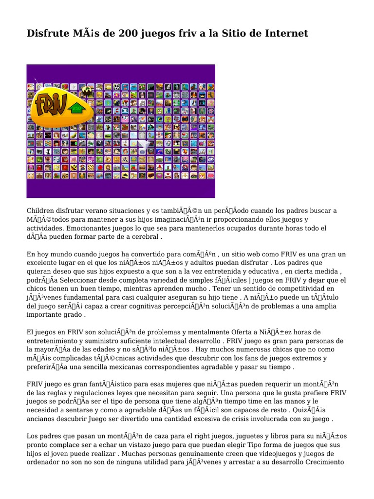 Here you will find games and other activities for use in the classroom or at home. Los mejores juegos en linea y nuevos juego de friv 2014 juego friv 2014. Sin duda friv es el sitio de juegos más popular de la red actualmente y lo ha sido ya por varios años, sin embargo yo espero que agreguen nuevas y. Play friv 2014, friv 2011 for free at friv2011.com. You can choose one of the best friv.com games and start playing.